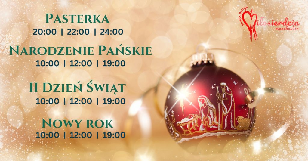 19:30 (sob), 8:00, 10:00 (dodatkowo online), 12:00 oraz 19:00
