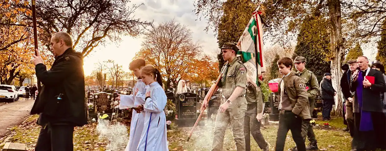 O godzinie 18:00 spotkaliśmy się przy grobie Marii Pawlikowskiej-Jasnorzewskiej i jej męża Stefana. Po krótkim apelu udaliśmy się do Parafii Miłosierdzia Bożego w Manchesterze, gdzie po Mszy św.